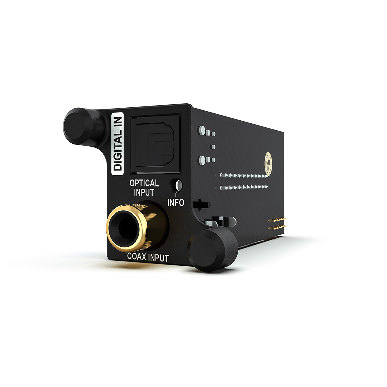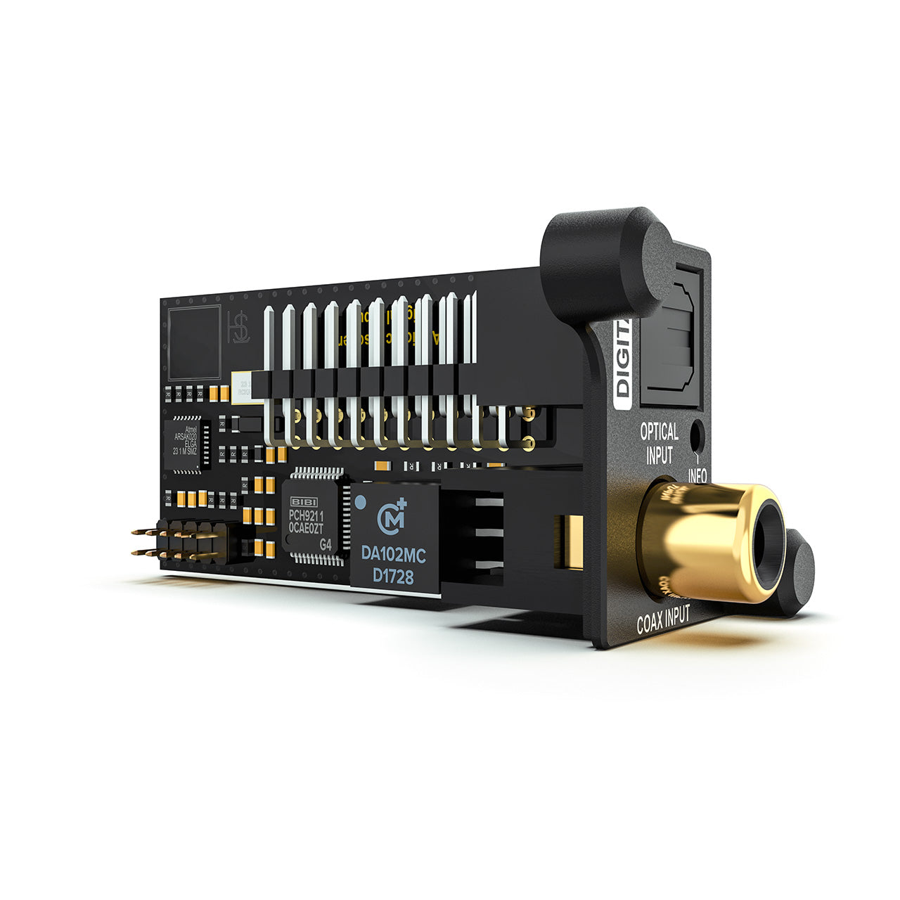 El módulo cuenta con una entrada digital óptica y otra coaxial en formato SPDIF. Esto permite la conexión de diferentes fuentes digitales, desde señales ópticas clásicas hasta fuentes coaxiales de alta resolución.